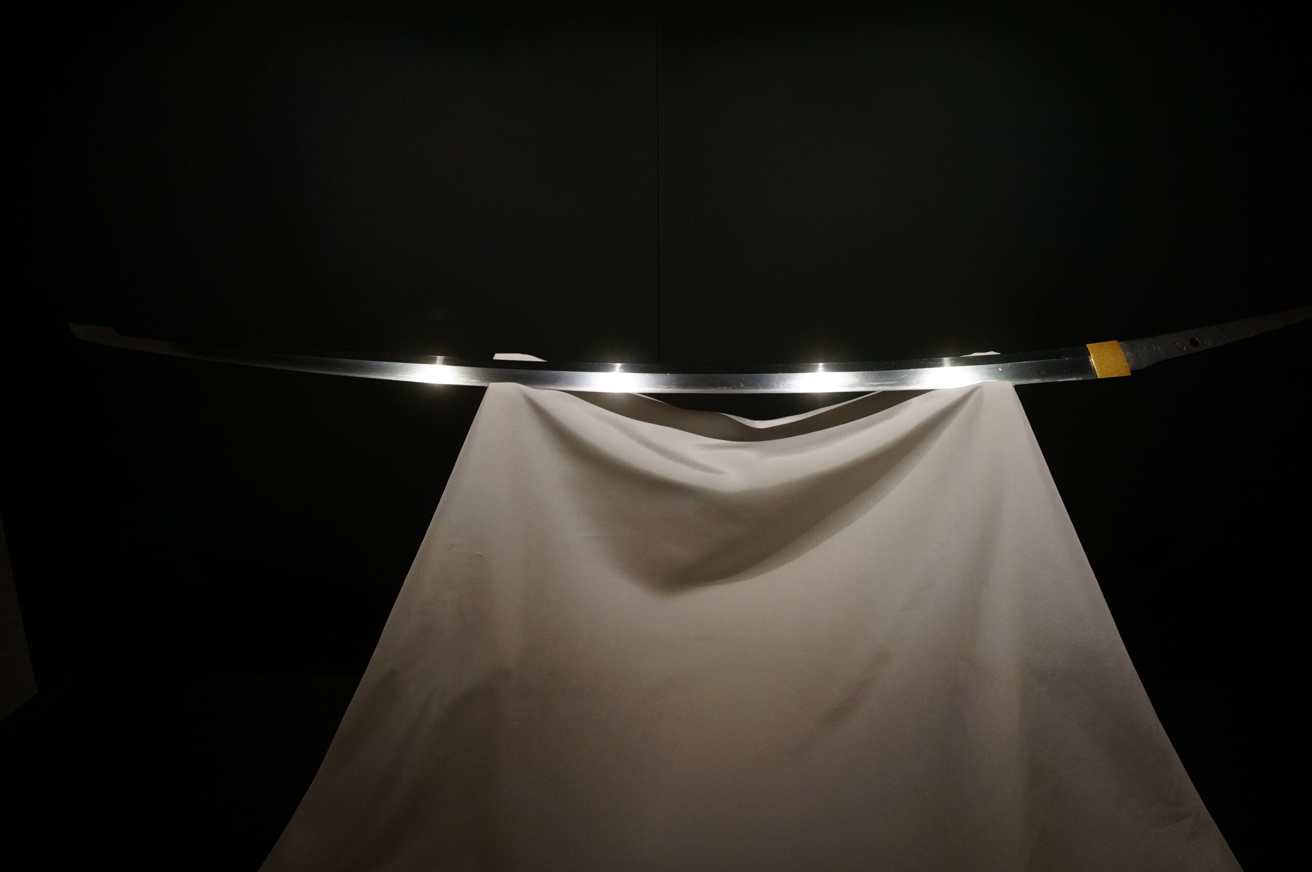 東京国立博物館で展示される際には、特別な照明が用いられ、刃文の美しさが最大限に引き出されるよう工夫されています。とりわけ、刀身に反射する光の加減によって、地鉄の肌目や、刃中の働きが美しく浮かび上がる瞬間があります。そうした瞬間を捉えるには、多少時間をかけて、じっくりと観察することが大切です。